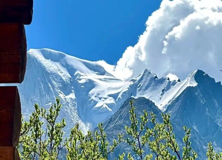 在山峰垭口处,耸立着一座白塔,白塔四周经幡飞。在远处,您还可以俯瞰海拔7000多米的“蜀山之巅”的贡嘎山。秋天,这里开始飘雪,届时山体完全被白雪覆盖,景色非常壮观。