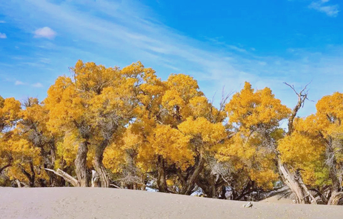 胡杨(学名:Populus euphratica),又称胡桐(汉书)、英雄树、异叶胡杨、异叶杨、水桐、三叶树, 是杨柳科杨属胡杨亚属的一种植物,常生长在沙漠中,它耐寒、耐旱、耐盐碱、抗风沙,有很强的生命力。这是一个神奇的树种,它的生长总是和凤凰与鲜血紧密相连。这是一个多变的树种,春夏为绿色,深秋为黄色,冬天为红色。这是一个坚强的树种,“胡杨生而千年不死,死而千年不倒,倒而千年不朽”。胡杨是生长在沙漠的唯一乔木树种,且十分珍贵,可以和有“植物活化石”之称的银杏树相提并论。它