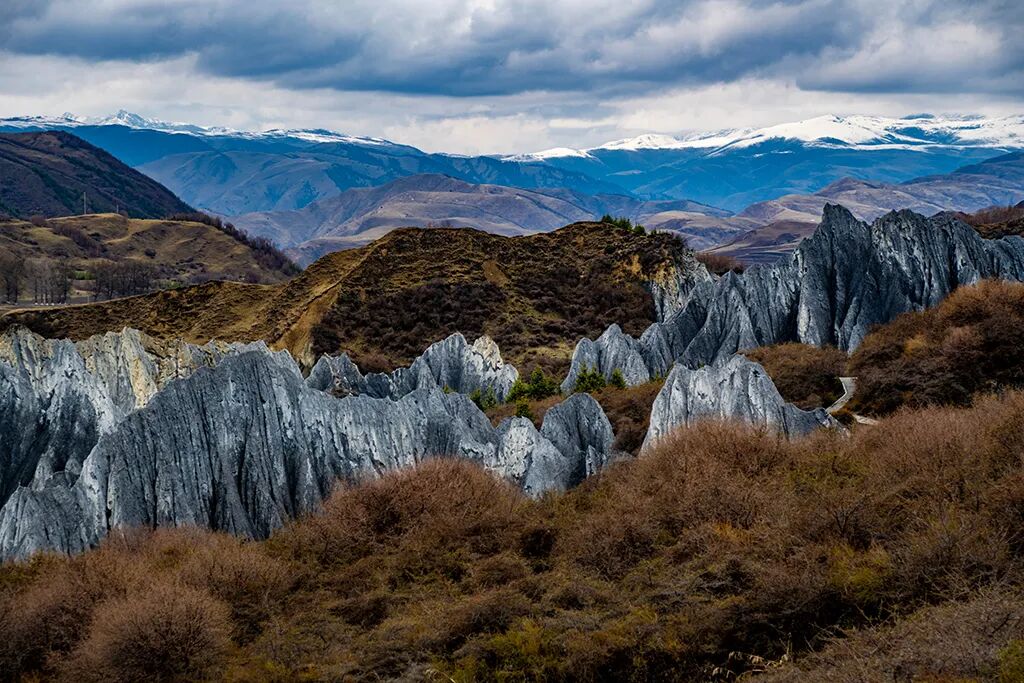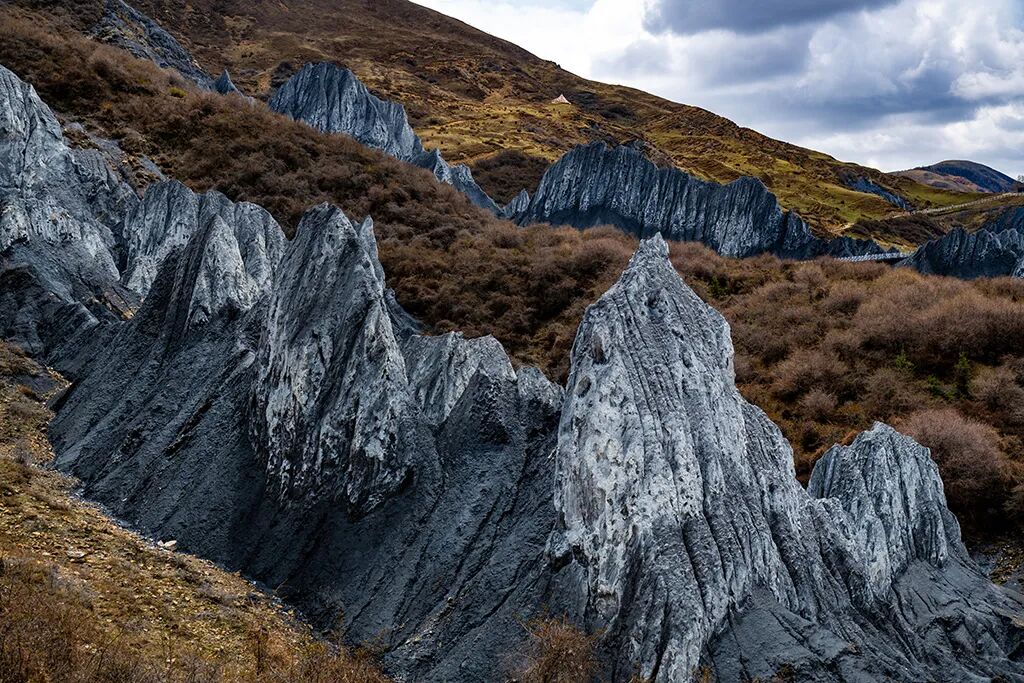 墨石公园:这里被称为“异域星球”,拥有全国唯一的高原石林景观。独特的糜棱岩在干湿环境下会呈现浅蓝色、深黑色等不同颜色,仿佛置身外星球。