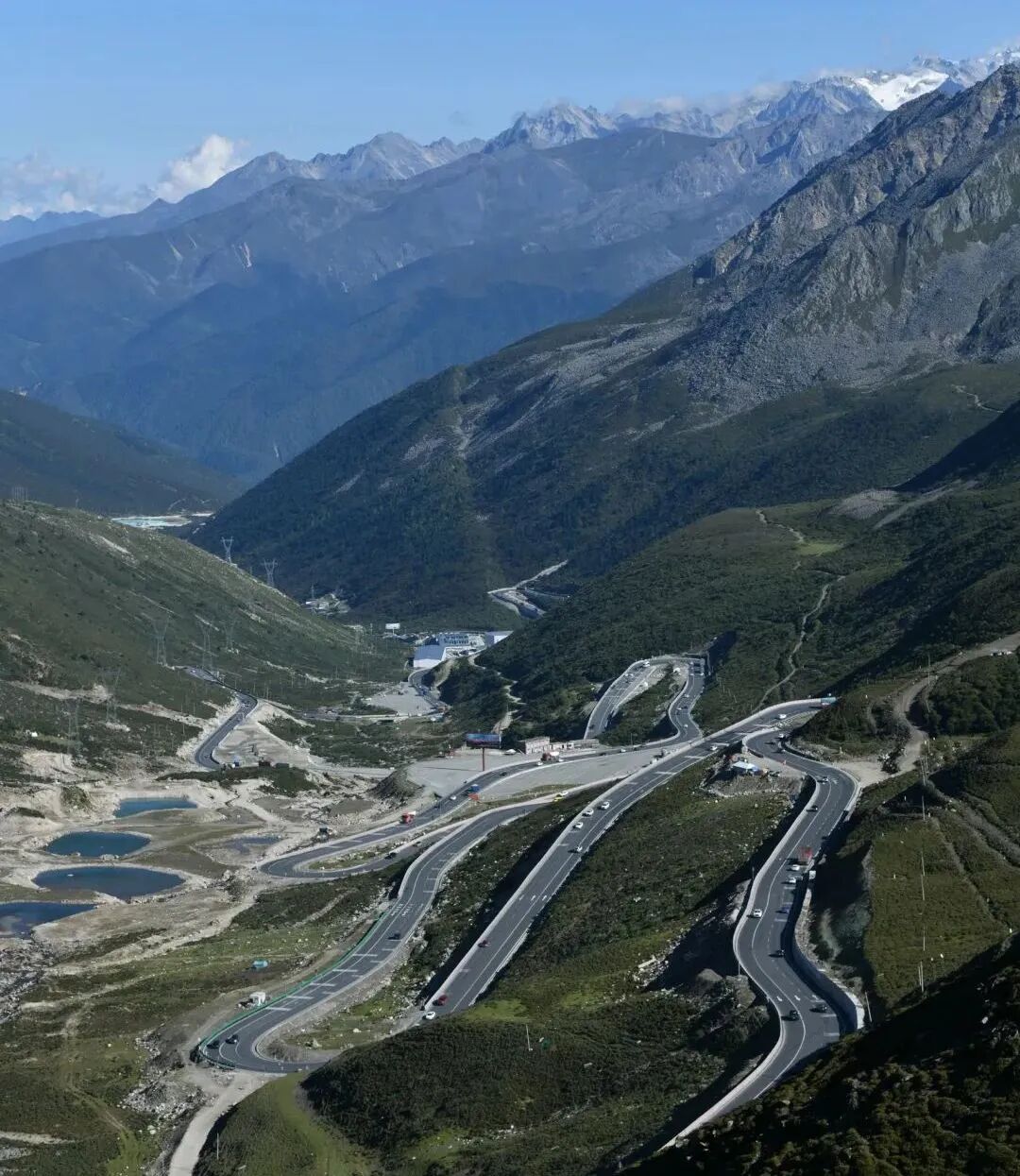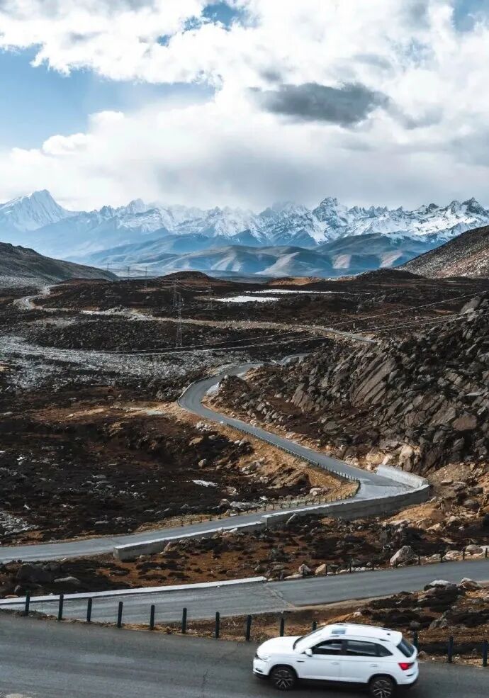 从成都出发,可在猫鼻梁观景台停车,这里是拍摄四姑娘山全景的经典位置。