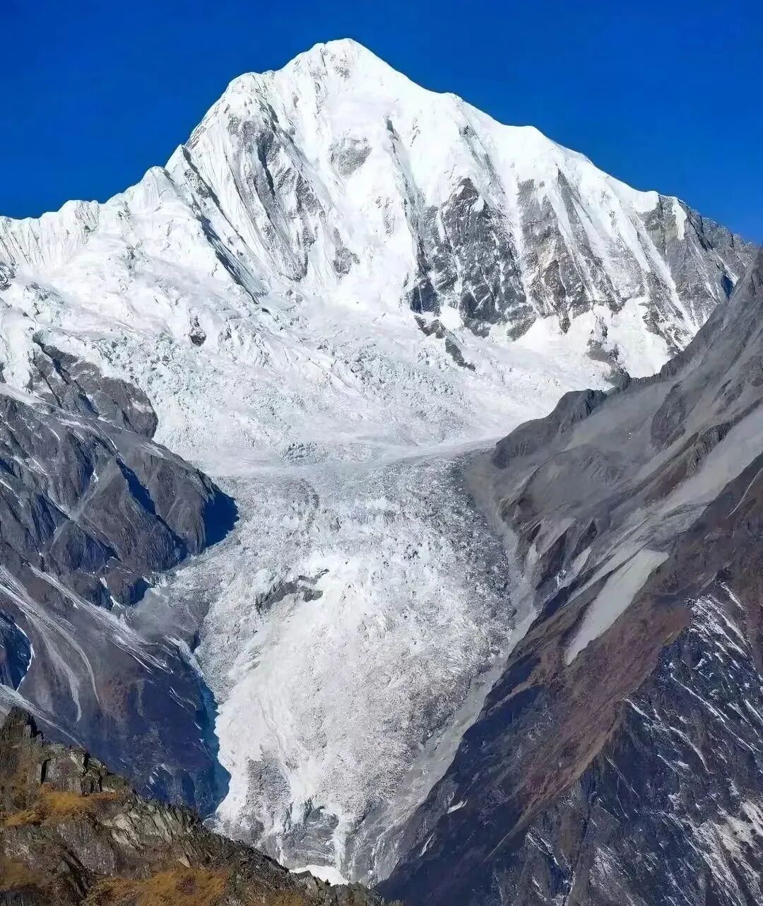 海螺沟冰川是亚洲海拔最低的现代冰川之一,其冰舌末端海拔仅约2850米,易于近距离观赏。冰川从贡嘎山奔腾而下,形成举世无双的大冰瀑布,高1080米,宽达1100米,蔚为壮观。