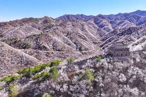望长城内外,山桃花盛开,漫山遍野,分外妖娆。三月底至4月初是山桃花盛花期,